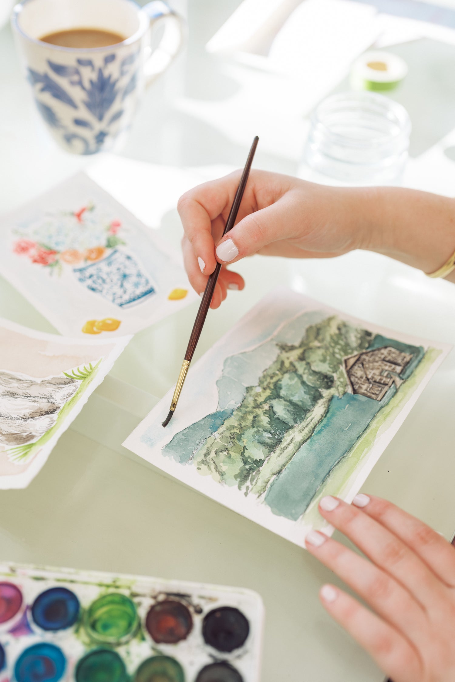The design process includes initial sketches that need your approval (2 complementary proofs and revisions are included, beyond that will be a $75 charge for each additional revision). From there we will begin painting and (if applicable to your order) designing your layout. Once we get it just right, we will have you approve your final design choices.